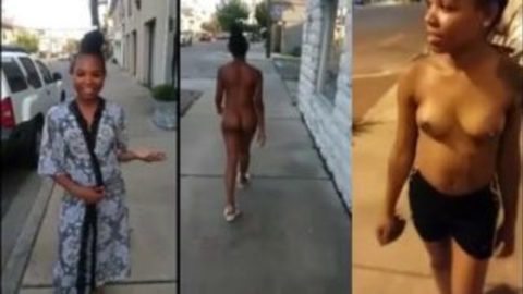 Petite African Lady Walk Naked On The Street In Day Light